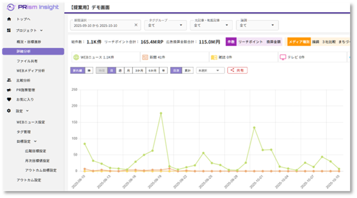 PR事業の電通PRコンサルティングは10月30日、広報・PR業務の効果測定を支援するサービス「PRism Insight(プリズムインサイト)」を11月1日から提供すると発表した。メディア露出の検知や分類、解析の効果測定を効率化する。経営指標と掛け合わせて広報活動の真の効果も解析できる。従来の「PR Matrixダッシュボード」をリニューアルした。
