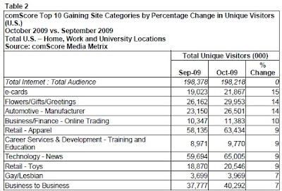 米2009/8ウェブサイト利用、ユーモアやライフスタイルのカテゴリーが上昇(comScore)
