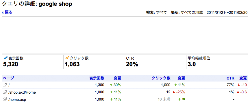 上位のページでクエリを検索する:昨年、Google はウェブマスター ツールの検索クエリ機能に様々な変更を加えてきました。ご好評を頂いている検索クエリ機能については、みなさまから多くのフィードバックを頂きました。最近多くよせられたリクエストのなかの 1 つはページ単位の検索クエリの詳細情報を確認したい、というものでした。Google はこれは便利な機能になりうると考え、さっそく実装に着手し、ようやく皆さまにもお使いいただけるようになりました。ウェブマスター ツールの「ウェブ上のサイト」内にある「検索クエリ」のページを開くと、「上位のページ」というタブが追加されています。「上位のページ」タブでは、Google 検索結果での順位に基づいて、あなたのサイトにおける表示回数上位のページの表示回数、クリック数、 平均掲載順位などのデータを確認することができます。