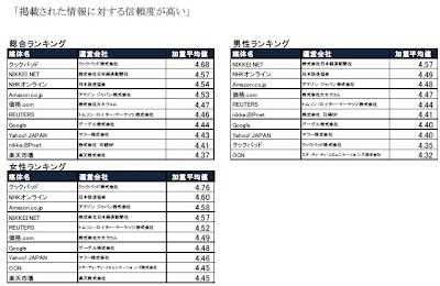 完全な状態のオリジナル記事は 「男性はNIKKEI NET、女性はクックパッドがトップ、インターネットメディアの信頼度ランキング」 からご覧ください。