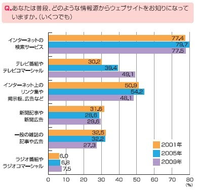 ウェブサイトの認知経路、この8年でテレビからの認知が大幅上昇