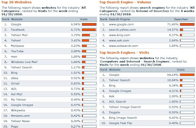 2010/1/30の週の米検索エンジンシェア、Googleが71.49%
