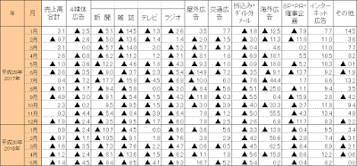 2018/5広告業売上、全体では前年同月比1.4%減、マス4媒体は同4.5%減、ネット広告は同8.2%増 | Insight for WebAnalytics