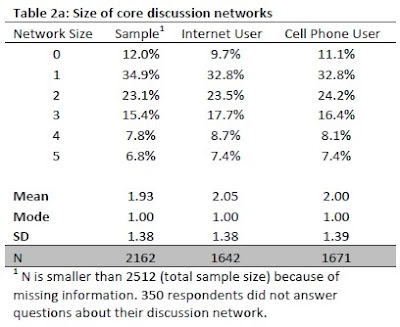 2009/11/4のPew Internet & American Life ProjectのSocial Isolation and New Technologyから。