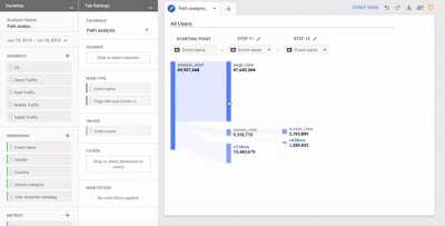 - 経路の分析: 目標到達プロセスの各ステップの間でユーザーが取った行動を調べ、コンバージョンの成否の原因を分析できます。