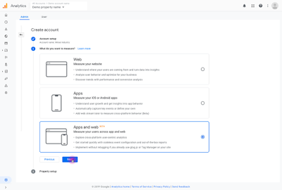 まず、アプリとウェブのデータを統合し、レポートや分析を一元化できる新しいプロパティ タイプ「アプリ + ウェブ」が導入されます。