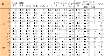 2019/6広告業売上、全体では前年同月比0.8%減、マス4媒体は同5.6%減、ネット広告は同6.6%増 | Insight for WebAnalytics