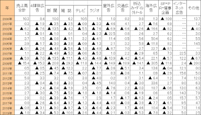 2019暦年の広告業売上、全体では2年連続で前年比マイナス、マス4媒体は同3.4%減、ネット広告は同5.0%増と勢いなくなる | Insight for WebAnalytics