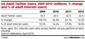 米18歳以上のTwitter利用者数、2010年に2,600万人に