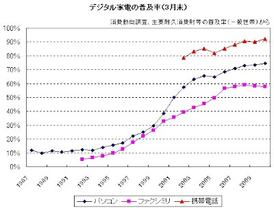 完全な状態のオリジナル記事は 「2010/3、一般世帯のパソコン(PC)普及率は74.6%、単身世帯で38.5%と成長ストップ」 からご覧ください。