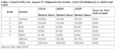 2009年アジア(除く日本)のPC出荷台数は14%増