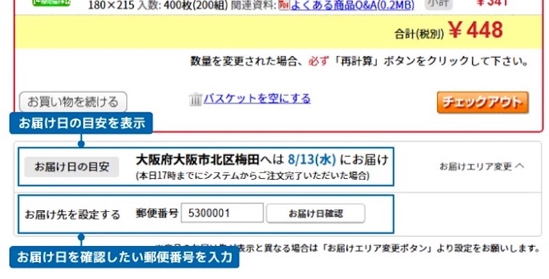 間接資材のECサイト「モノタロウ」を運営するMonotaROは9月3日から、大企業向け購買管理システムでカタログ連携(パンチアウト)を利用している顧客向けに、配達予定日を表示する「お届け日表示」機能を導入した。