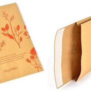 あたたかみのあるクラフト紙に、ぬくもりを感じるオレンジ色のインクでデザインをプリントし、フェリシモならではの“やさしさ”や“楽しさ”を演出している。