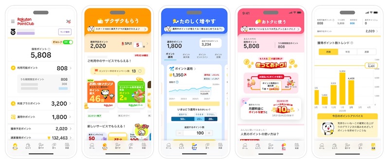 オリジナル記事:楽天、楽天ポイント公式アプリ「楽天PointClub」を刷新。ポイントの獲得や利用状況を確認しやすい「もらう」「増やす」「使う」「実績」タブを新設