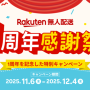 楽天は「楽天無人配送」1周年を記念し、11月6日から12月4日まで「1周年感謝祭」を実施。期間中に利用できる合計2000円分の3種類の割引クーポン配布や、注文者の中から抽選で「注文金額全額を楽天ポイントで還元」するキャンペーンなどの特典を用意している。