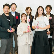 第2回アワードの受賞者(トロフィーを持っている7人)、2023年に開催した第1回アワードの受賞者(前列の右から4人)、選考委員(後列の右から4人)