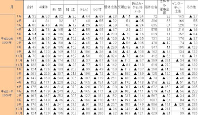 Total sales of 4 mass media (TV, radio, magazine, newspaper) also 11 consecutive month decline. Only internet advertising rise 3.9% compared to Nov 2008.