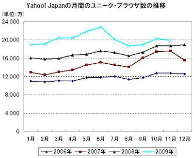 2009/10mixiの総利用時間が急増、YouTubeを抜き、Yahoo!に次ぐ2位に