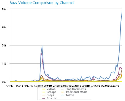 2009年1月から2010年1月までの1年間の成長は異常としか言いようがない。たった1年間で、つぶやきの数が16倍に増えたのだ。