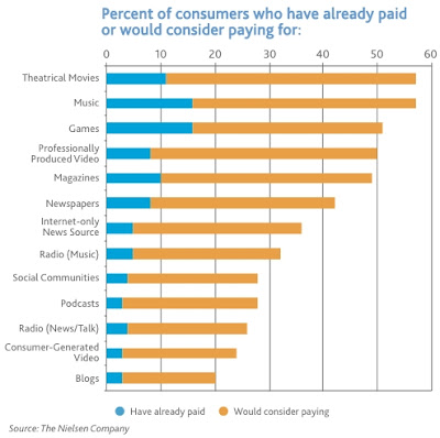 音楽やゲームは15%くらいが既に購入している。購入を検討してもよいを含めれば雑誌などは5割にもなるが、問題は実際にビジネスになるかという点だろう。なって欲しいものだ。