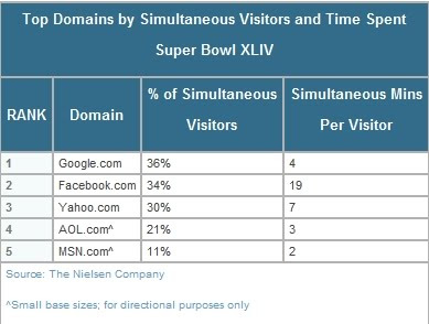 米スーパーボウルを見ながら少なくとも1回以上ネットに接続していた人の割合は14%になるという。その中で、どのようなサイトを見ていたかというデータだ。