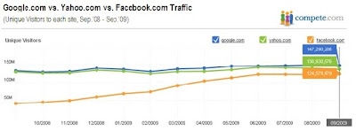 2009/11/6のcompeteのブログから。FacebookはGoogleやYahooと同じくらいのリーチを取れる媒体となっている。ここで紹介されているDiceという技術系仕事サイトの例では、広告によりサイト訪問者ベースで3倍の効果があるとしている。