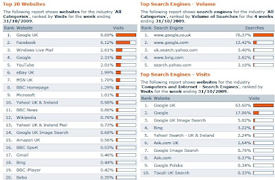 2009/11/5のcomScoreのリリース。Google,Microsoft,Yahoo!,UOLなどが上位にある。国外から見られている国内の運営サイトが多いのも特徴のようだ。