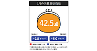 “モノを買いたい・サービスを利用したい欲求”を点数化。例年5月はGWで数字が上がるが今年は低調。