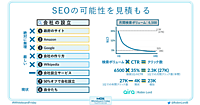 SEOの対策をしたらビジネスにどのくらいの成果が見込まれるでしょうか? 自社のSEOでの可能性を見積もる方法について説明しています。ターゲットとなるキーワードを見定め、検索意図を分類したうえで、記事の順位を上げるための戦略を立てることが重要です。SEO会社の比較検討にも知っておくべき知識ですので、ぜひ参考にしてください。
