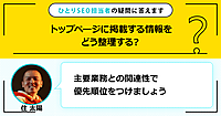 SEO担当者の質問に、SEOのエキスパートである住 太陽さんが実践的で有効な解決法を答えます。今回の質問は「トップページに掲載する情報をどう整理する?」です。