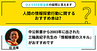 SEO担当者の質問に、SEOのエキスパートである住 太陽さんが実践的で有効な解決法を答えます。今回の質問は「人間の情報探索行動に関するおすすめ本は?」です。