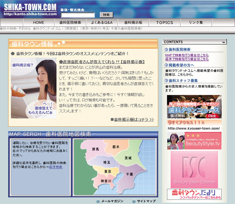 - 事業内容: 歯科医院専門情報サイト「歯科タウンドットコム」、美容専門情報サイト「BeautyStyle.tv」、美容外科ガイド「BIYOU BB」の運営、ホームページ制作、販売戦略コンサルティング業務など