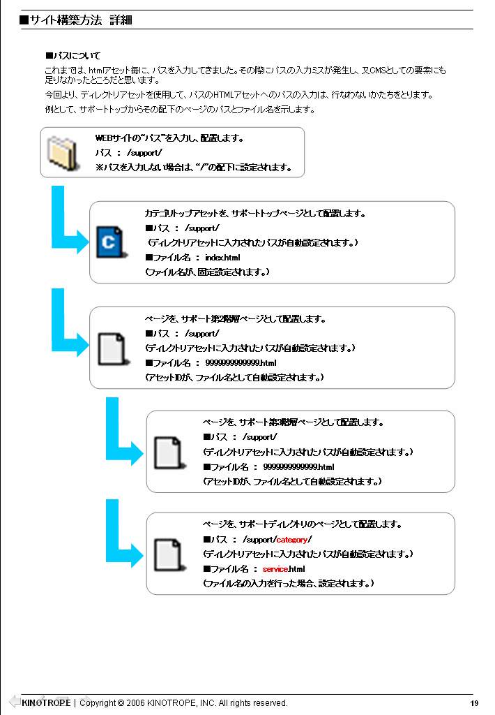 これでは、コンテンツ管理ができる状態にはなく、CMSを導入してもかえって手間が増えることになる。実際に、今コンテンツ管理の仕組みがうまく機能していない背景には、こういった基本設計がないままに構築されている状況があると考えられる。すべての担当者と最終的なコンセンサスを取るためにもこの基本設計書は重要なポイントであり、基本設計書なしには、成功するCMSの導入はないと心してほしい。