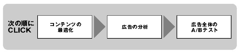 「広告全体のA/Bテスト」は、アイコンとテキストリンクでクリック数を比較するといった、効果を比較するのに便利です。判別しやすいように、アイコンには「?click=icon」、テキストリンクには「?click=txt」というようなパラメーター(Google Analytics用のタグ付きURL)を設定しておくと、検証が簡単です。