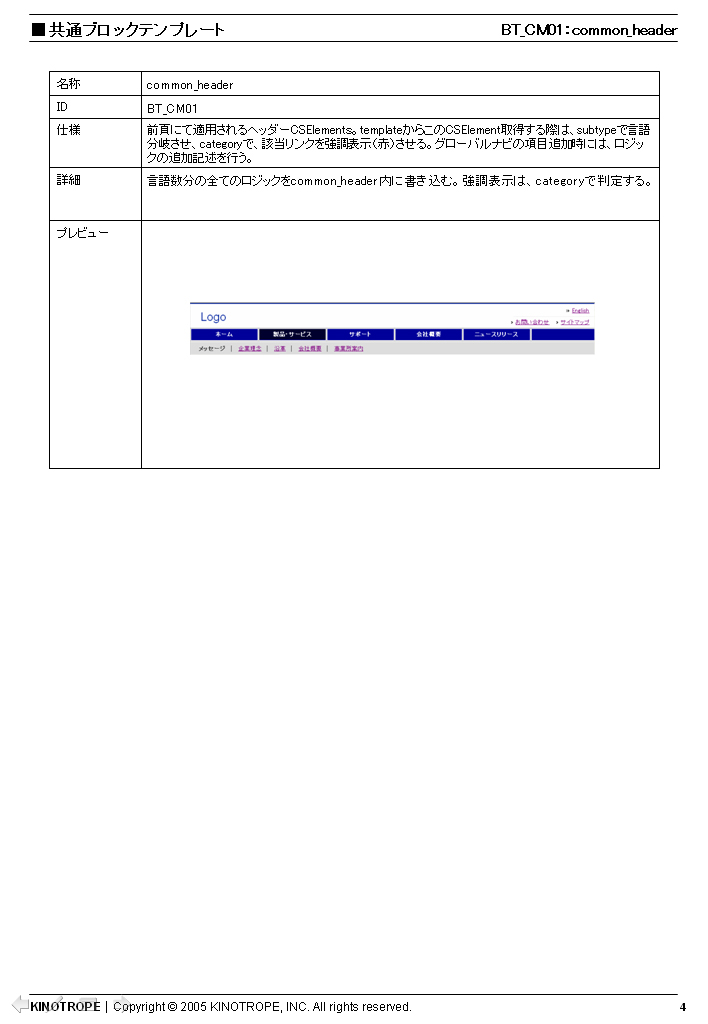 テンプレート設計書の例
