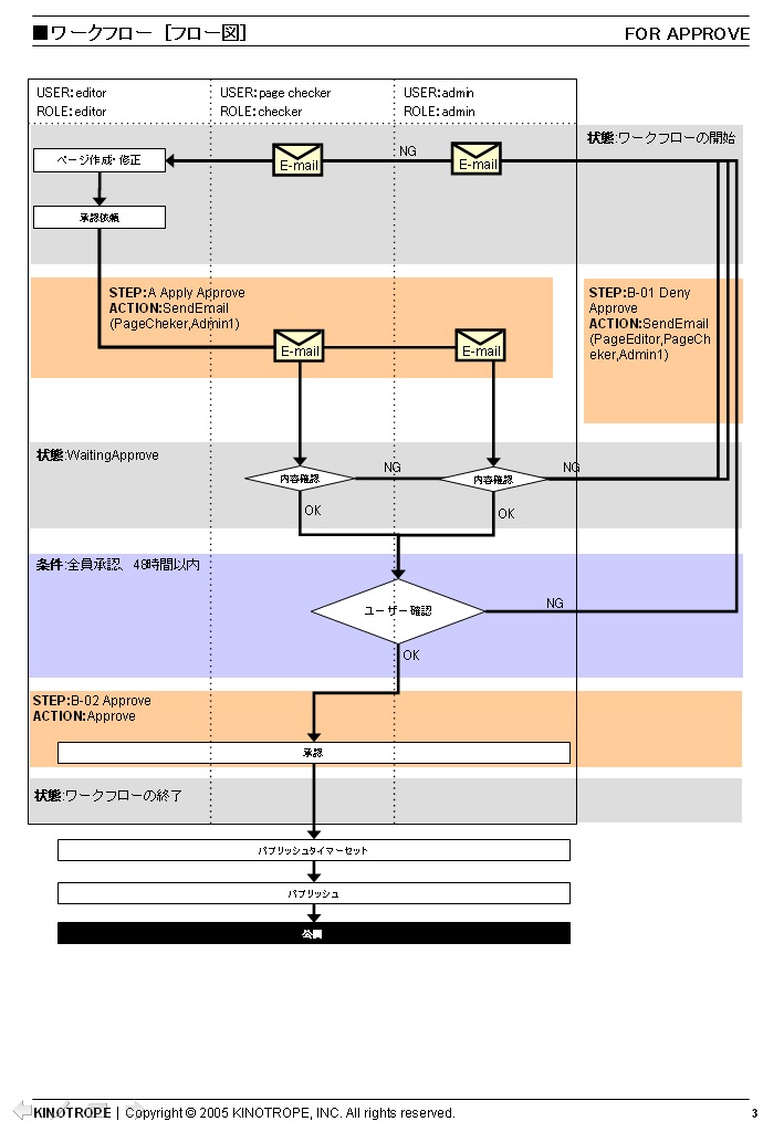 定義の中には、承認やフィードバックなどもあるので、戻り先やどのタイミングにてメールを配信するのかなどといったものを含めて明確に定義する必要がある。