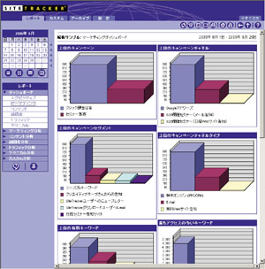 日本で一番売れているのが「SiteTracker」で、2000社への納入実績があるという。その機能をひと言で表すと「解析ツールのデパート」とでも言えようか。とにかくなんでもあるのだ。特筆すべきは、会員向けのサイトで顧客の趣向や動向を分析できること、ストリーミングメディア(動画、音楽)の配信状況を分析できること、プロキシ/ファイアウォールを経由した社内からの他ウェブサイトの利用状況を分析できることなどである。