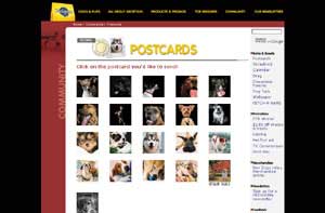 このサイトは、ドッグオーナーが情報交換や愛犬自慢をしあえるコミュニティサイトで、愛犬の写真とストーリーを書き込めるカスタマイズポストカードなども用意されている(図8、9)。