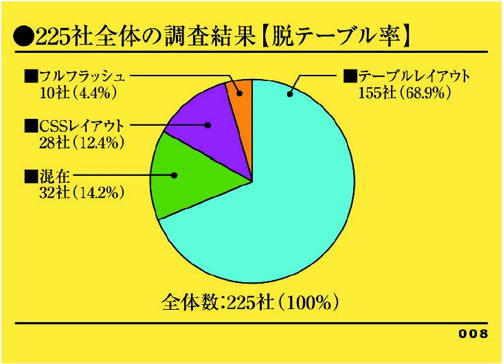 そして、必要であればページのデザインは、CSSを使っていても自由に表現することが可能である。外部スタイルシートファイルの組み合わせをあらかじめ設計しておけば何の問題もない。要するにCSSの問題である以前に、サイトの表現計画をうまく設計できていないといえる。