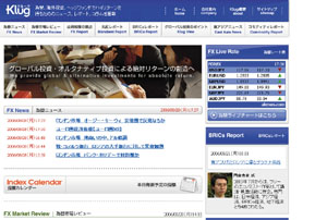 「クリエイティブに正解はないと思いますが、デート通.jpを運営してきた経験から、どのスポットに仕掛ければいいのかとか、どのターゲットに働きかければブレイクするのかという落としどころはわかります。ほかにも、PVがこれくらいになったらサーバーを増強しましょうといったように、経験に基づいた運用面でのアドバイスもできます。このような経験を踏まえて、為替情報ポータルサイト「Klug」の立ち上げをお手伝いしました(図3)。Klugの本業は新しいスタイルのFXなのですが、最近になって追随するポータルサイトが登場しました。他社さんに模倣されるというのは注目されているサービスの証しでもあるので、お客様は『ほんとに似ているね』とむしろ喜ばれていました」
