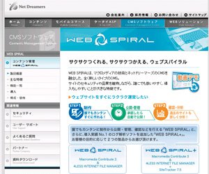 | 特 徴 | FILE MANAGER、CONTENTS MANAGER、CAMPAIGN MANAGERなど、機能ごとにモジュール化されている。また、FILE MANAGERは「WEB SPIRAL」という製品名で、パッケージモデルも展開されている。 |