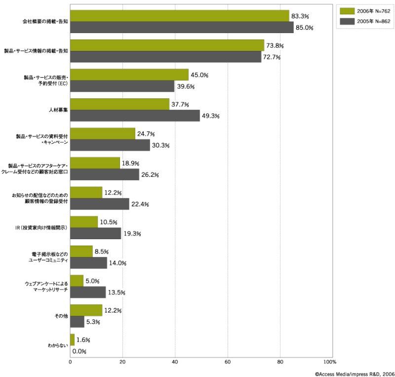既存の顧客サポート、人材募集、情報伝達、IRが目的の場合