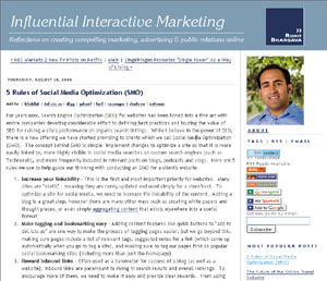 発端はOgilvy Public Relations WorldwideというPR会社でインタラクティブマーケティング部長を務めるRohit Bhargava氏で、彼がブログ「Influential Interactive Marketing」に投稿した「5 Rules of Social Media Optimization (SMO)」という記事で、サイトの実装の面からワークフローに組み込むことのできるSMOの手法が5つ紹介された。この記事はソーシャルブックマークや他のブログなどを通じて瞬く間にウェブ上の大きな話題になり、あっという間に175件ものリンクを集めた。
