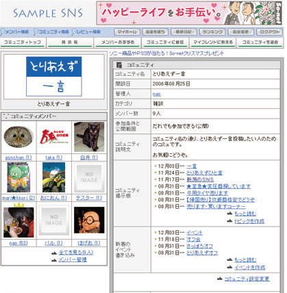 その代表的なサービスの1つに「So-net SNS」がある。競合する多くのインターネットサービス関連企業では、既存ユーザー向けに巨大SNSを立ち上げたが、So-netではSNSそのものを自社運営するのではなく、「SNSを自分で運営したいユーザー」のためにOpenPNEを用いて、無料レンタルSNSをリリースした。OpenPNEの基本的な機能を知りたい場合は、これを使って実際にSNSを作成してみるのが手っ取り早い。