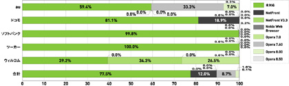 Operaはauやウィルコム、NetFrontはドコモやウィルコムに搭載されている。