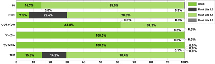 Flashのバージョンは、Flash Lite 1.1が70%以上