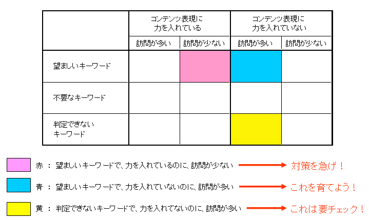 望ましいのに力を入れていない、だから訪問者も少ない、というキーワードが見つかれば、今後拡充すべきコンテンツは決まったようなものだ。そのキーワードに対応するコンテンツを作らない手はない。