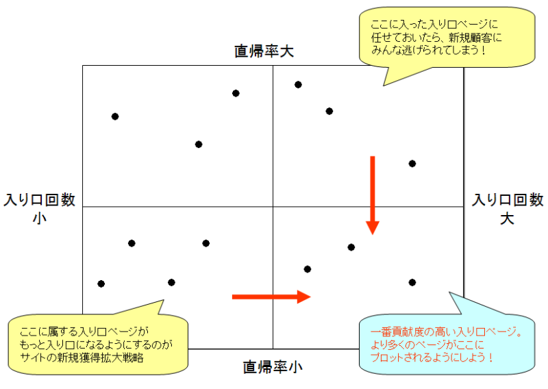 さて、これで多くの入り口ページが4つの象限に分類された。