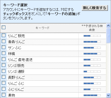 関連するキーワードが、前月に実際に検索された回数とともに表示される。