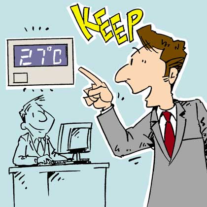 冷房の設定は27℃が適温。外気温と10℃以上の差は厳禁! 除湿をして体感温度を下げよう。